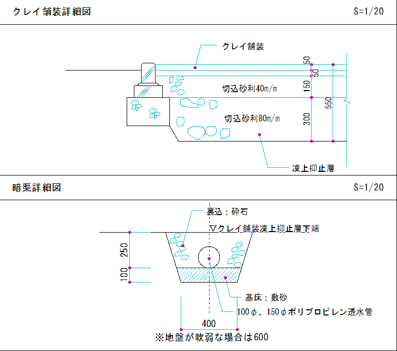 凍上抑止層は、下層が、切込砕石80mmで厚さ300mm、
