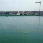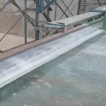既設塩ビシートのジョイントおよびパッチ補修周りはW=100程度ガラスクロス補強を行ないます。