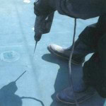 浮き・あばれ対策として一定の範囲を定めて樹脂アンカープレートを打ち込みます。