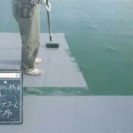 1層目の硬化後、床面、パラペット部にDSカラーを再び1.5㎏/㎡鏝、ゴムベラなどで流し延べします。