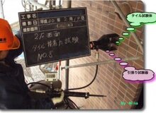 張付用モルタルが硬化してから(約2週間程度)の検査になり、気温差により、硬化時間が違いますので、注意が必要です。